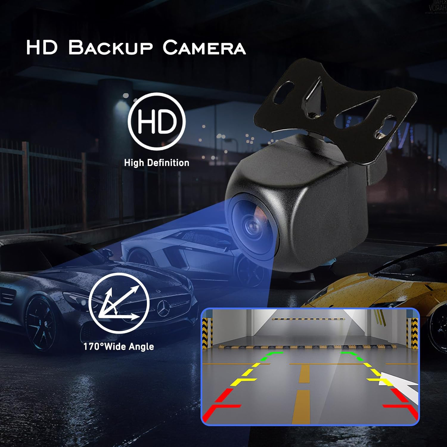 【1080P Adjustable Backup Camera with 6m/20ft Cable】The car radio features a high-definition 1920x1080P reversing camera with a 170° viewing angle. This waterproof camera supports HD color night vision, ensuring you no longer need to worry about reversing safety. When the vehicle shifts into reverse, the image is displayed automatically, functioning as a reliable parking assistant. Remember to use it only for auxiliary reversing and to observe the situation behind the car—it does not record.
