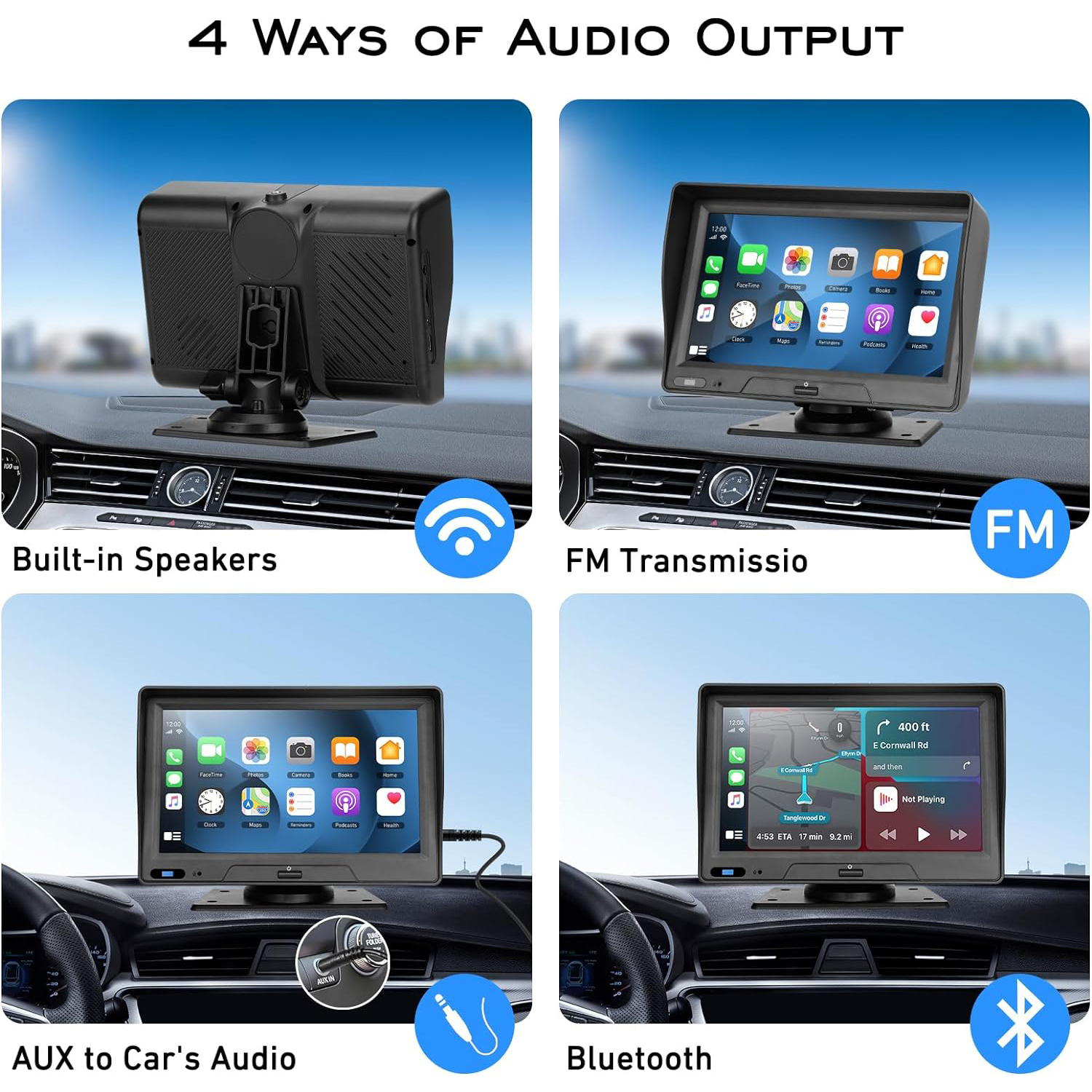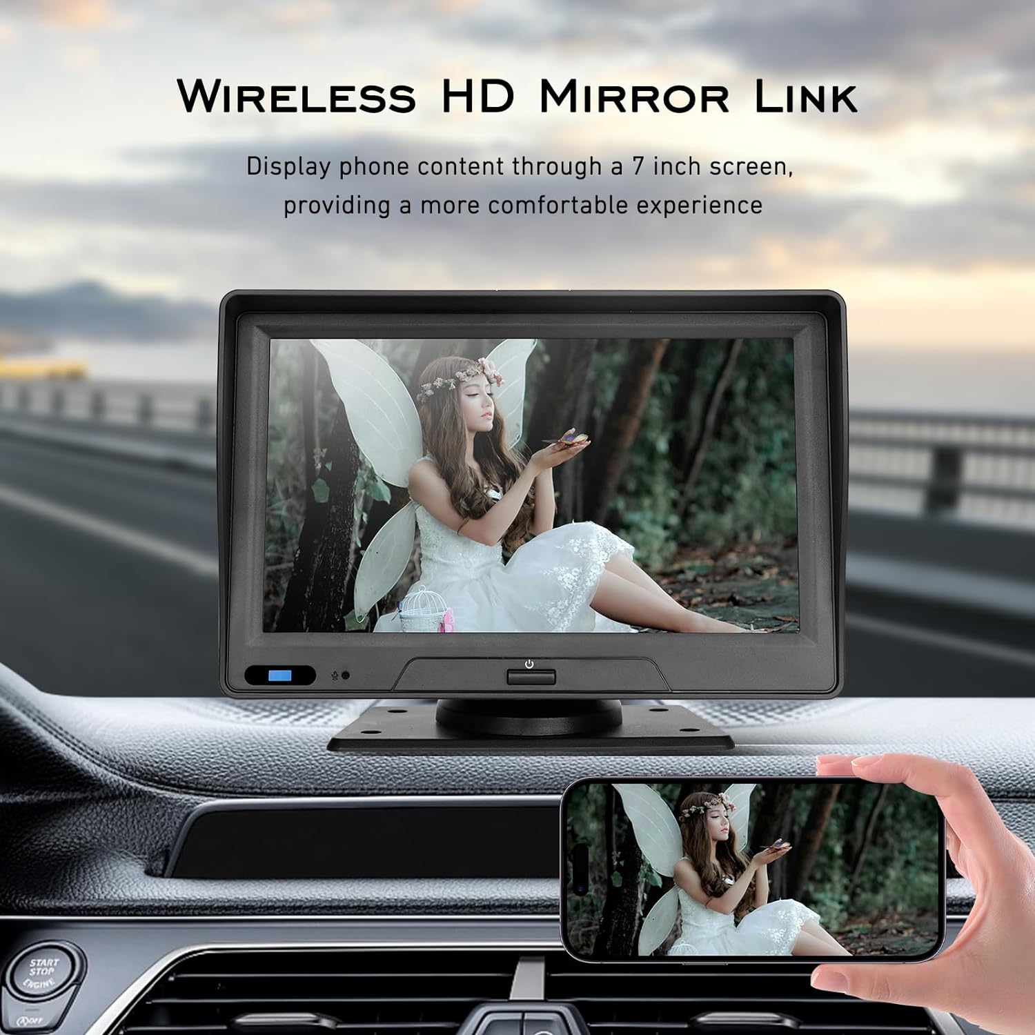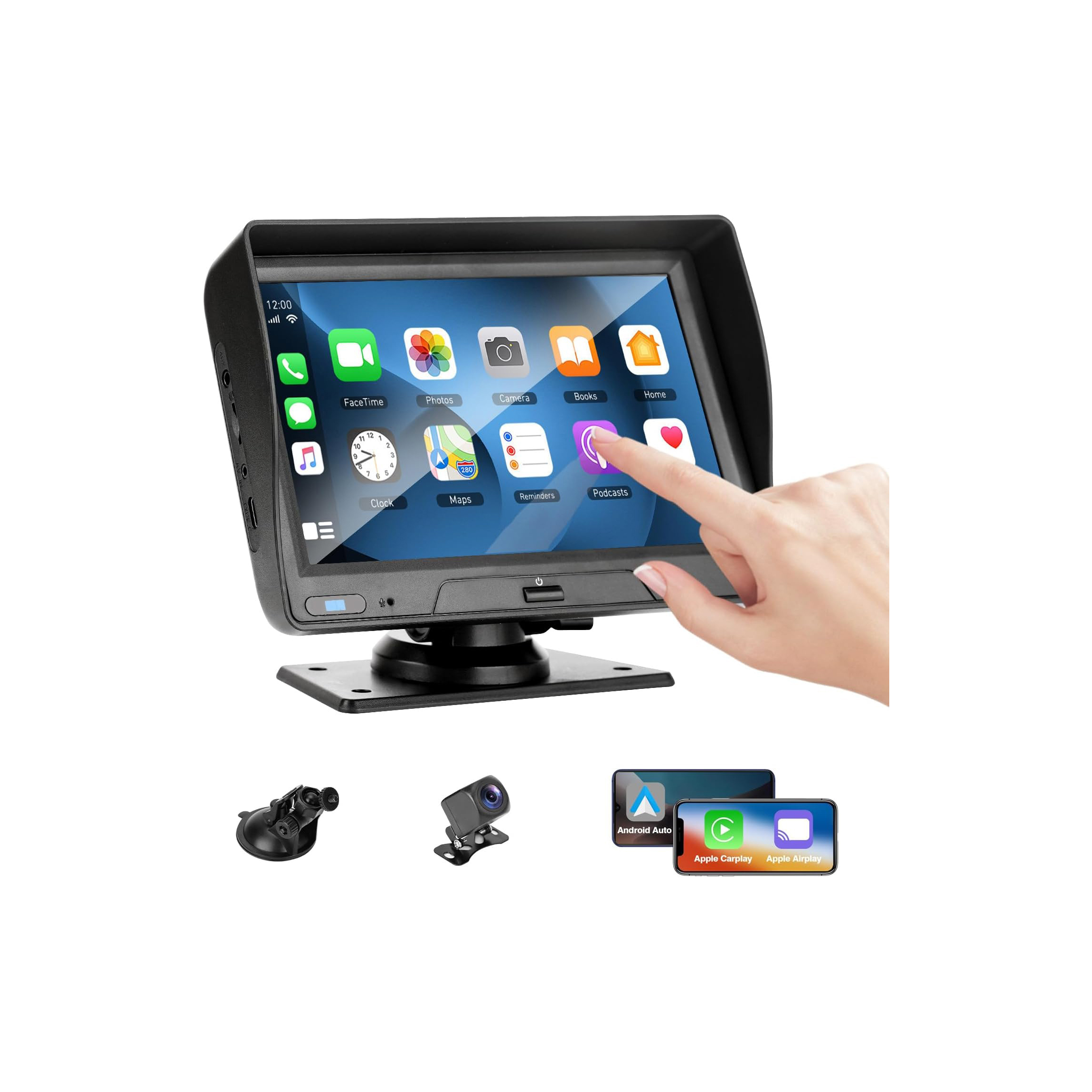 【Simple Installation, Universal Compatibility】The Apple CarPlay and Android Auto dash mount car play screen is designed to work with 7-32V vehicles. It offers plug-and-play installation via the cigarette lighter power outlet, eliminating the need to remove the factory stereo. This makes the portable carplay screen an affordable and convenient add-on display for cars, RVs, trucks, SUVs, and pickups.